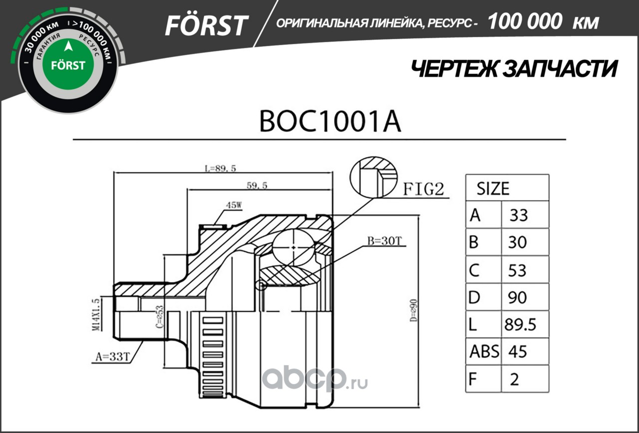 Расширенное описание: Шрус AUDI A4 (95-), VW Passat (97-) (наруж.) [с ABS, 33/30] (BOC1001A) B-RING FÖRST