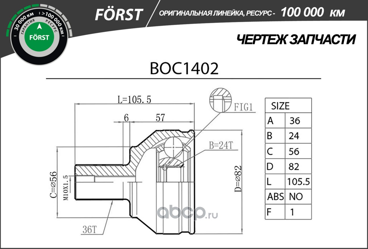 Расширенное описание: Шрус FORD Focus (04-) (наруж.) [36/24]