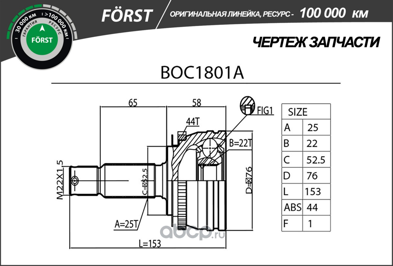 Расширенное описание: Шрус HYUNDAI Accent (00-) (наруж.) [с ABS, 25/22] (BOC1801A) B-RING FÖRST