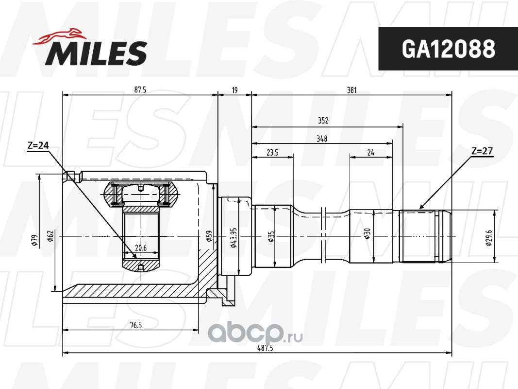 Miles GA12088 ШРУС внутр.прав. BMW X3 (E83) 2003-2011 2.0/3.0d/3.5d