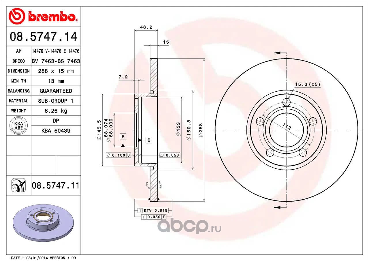 Диск тормозной передний BREMBO 08.5747.11