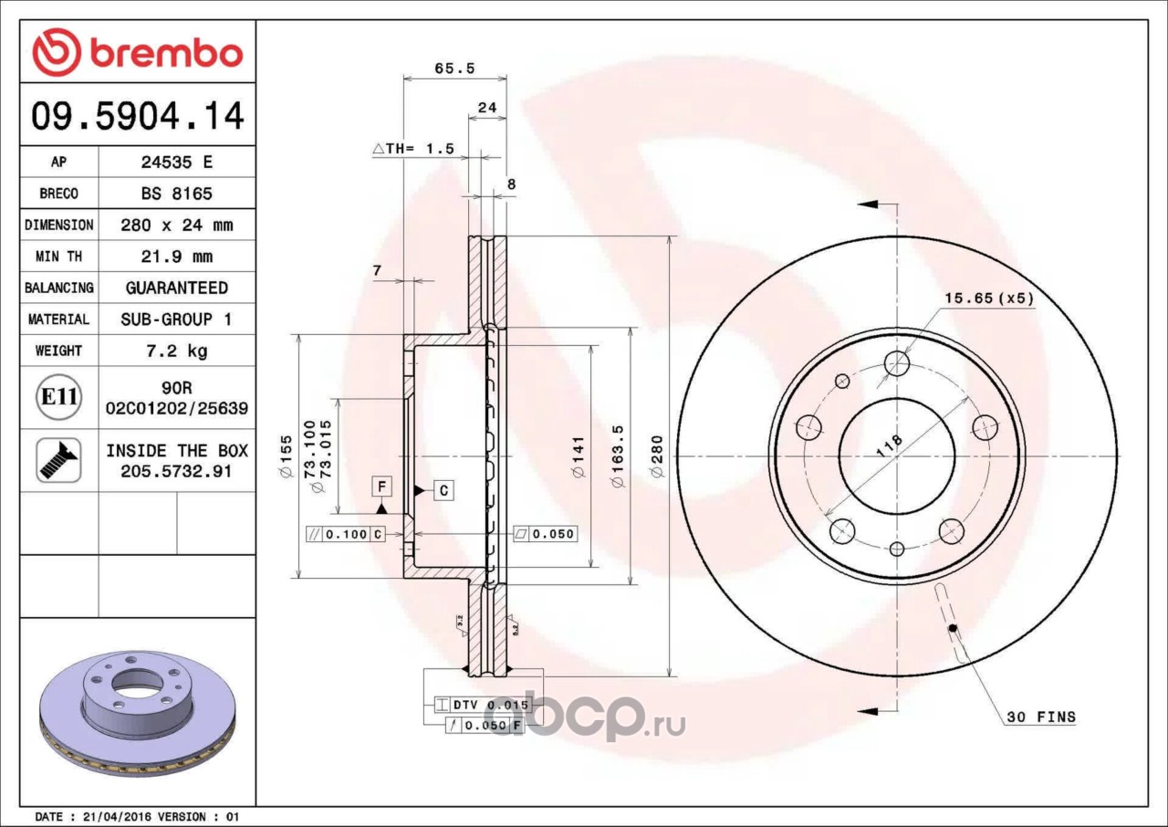 Диск тормозной 09.5904.14