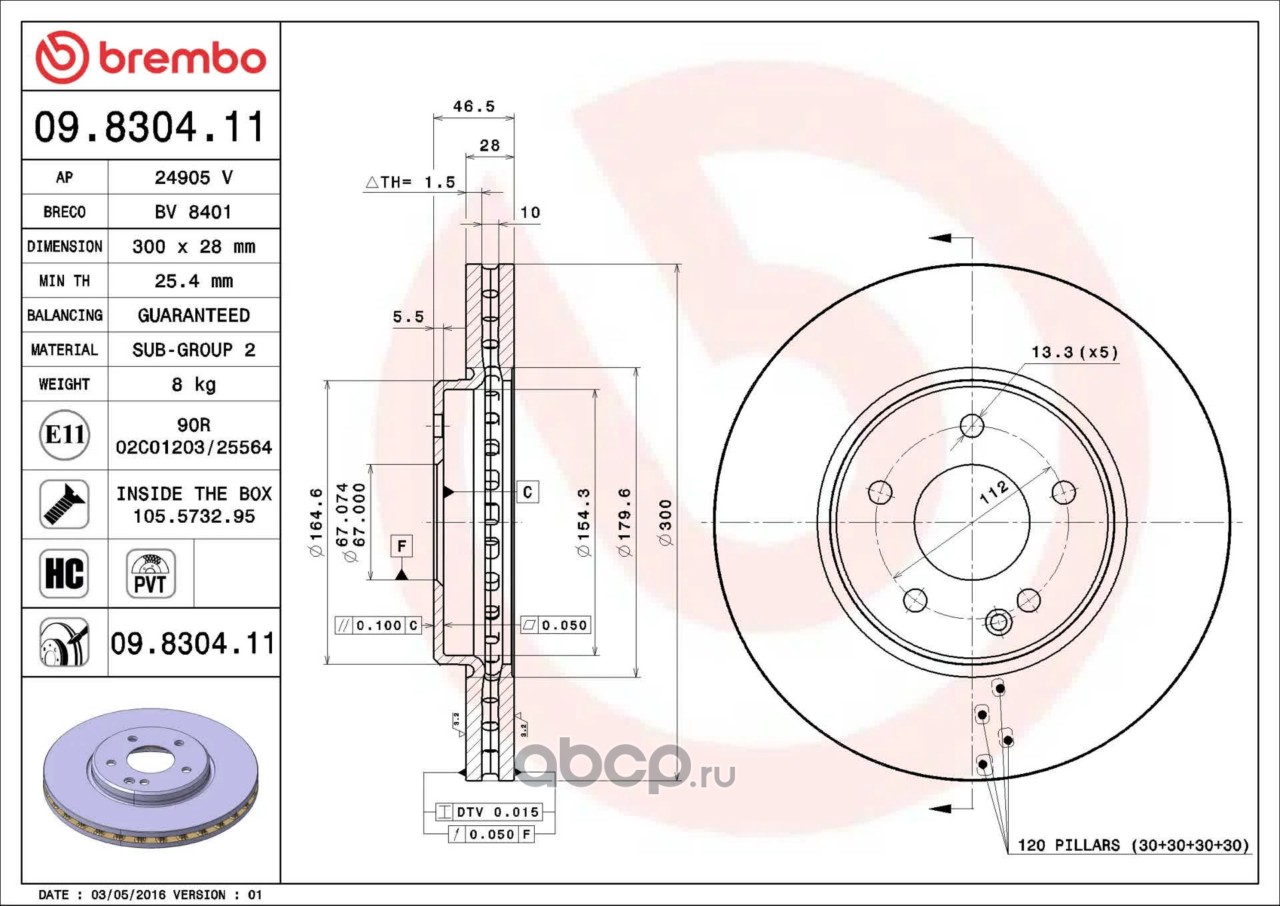 Расширенное описание: Тормозной диск , крашенный , вентилируемый с технологией PVT
