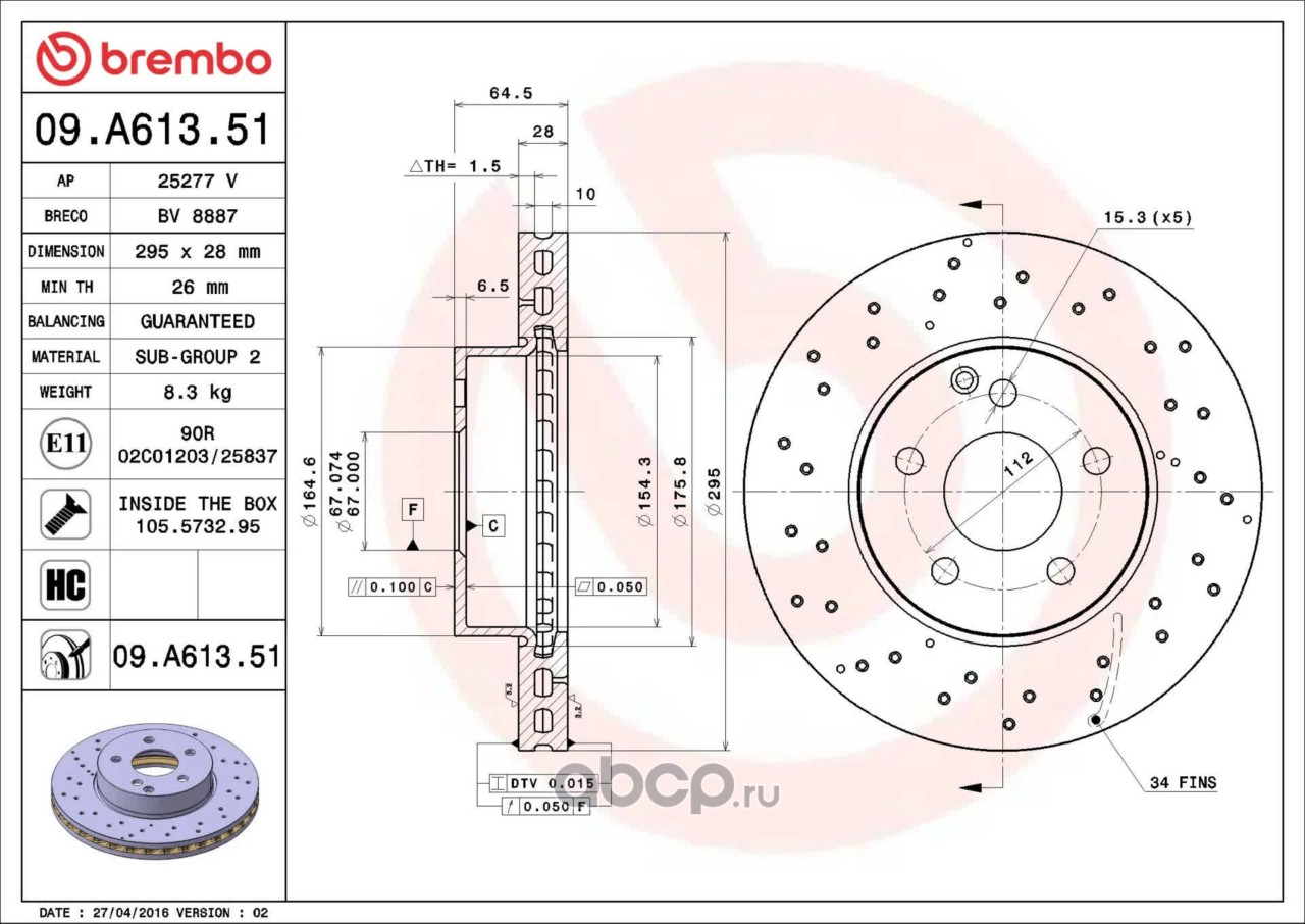 Расширенное описание: Диск тормозной передний MB W204 /Vent D=295mm