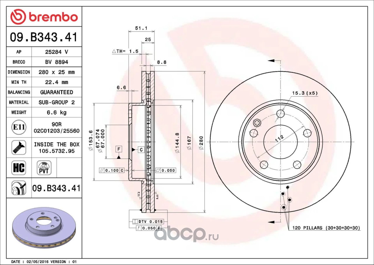 All World Cars - продажа Диск тормозной передний 280mm PVT окрашенный артикул 09B34341 по всей России и странах СНГ. Развитая сеть представительств с быстрой доставкой товаров бренда Brembo и гарантией выгодной цены. Покупая в AWC товар Brembo каталожный номер 09B34341 вы бережете свое время, нервы и деньги.