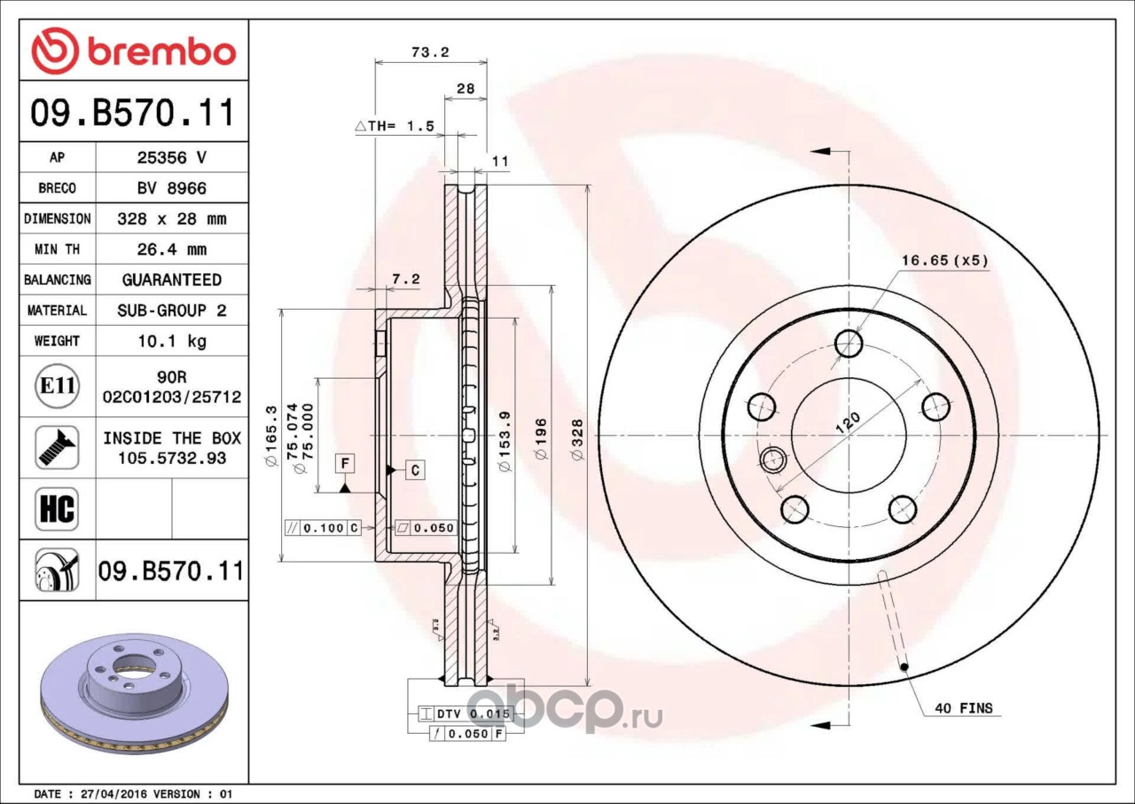 ДИСК ТОРМОЗНОЙ 09.B570.11
