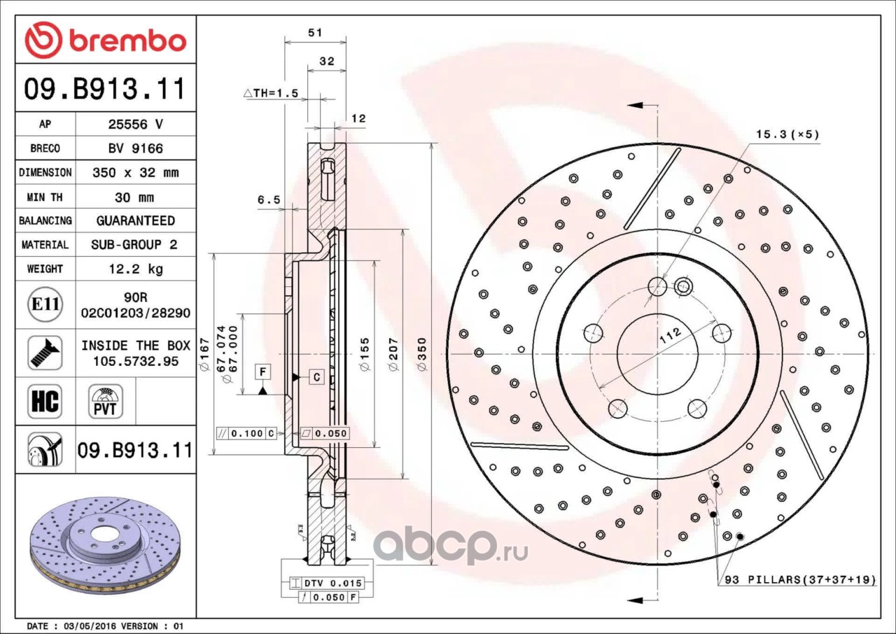 All World Cars - продажа Диск торм. пер.вент.[350x30] 5 отв. артикул 09B91311 по всей России и странах СНГ. Развитая сеть представительств с быстрой доставкой товаров бренда Brembo и гарантией выгодной цены. Покупая в AWC товар Brembo каталожный номер 09B91311 вы бережете свое время, нервы и деньги.