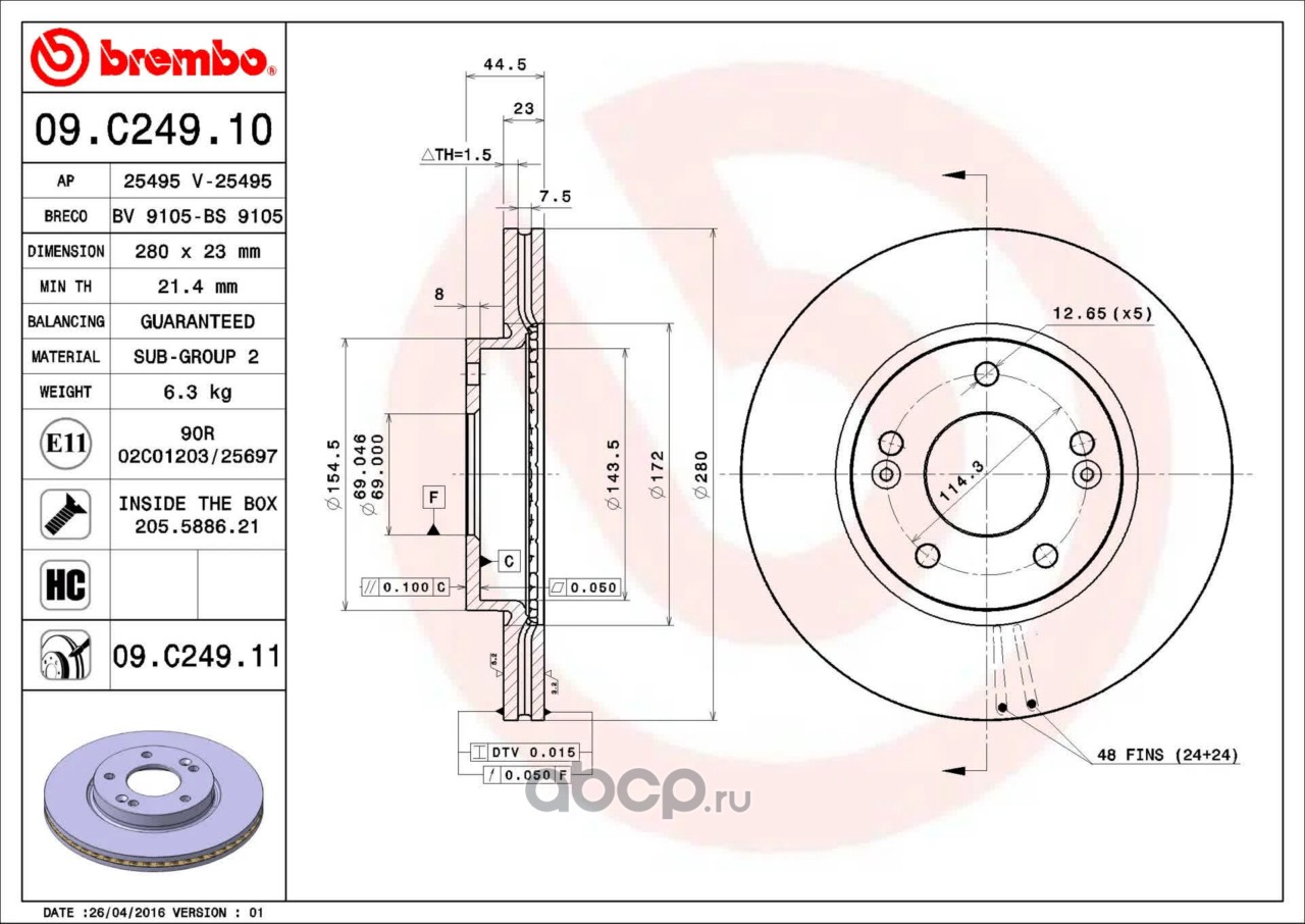 All World Cars - продажа Диск торм. пер. вент.[280x23] 5 отв. артикул 09C24911 по всей России и странах СНГ. Развитая сеть представительств с быстрой доставкой товаров бренда Brembo и гарантией выгодной цены. Покупая в AWC товар Brembo каталожный номер 09C24911 вы бережете свое время, нервы и деньги.