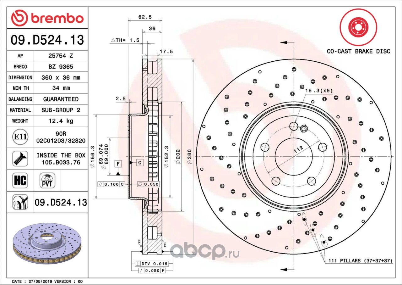 Расширенное описание: Тормозной диск , c технологией Co-cast , вентилируемый с технологией PVT , перфорированный