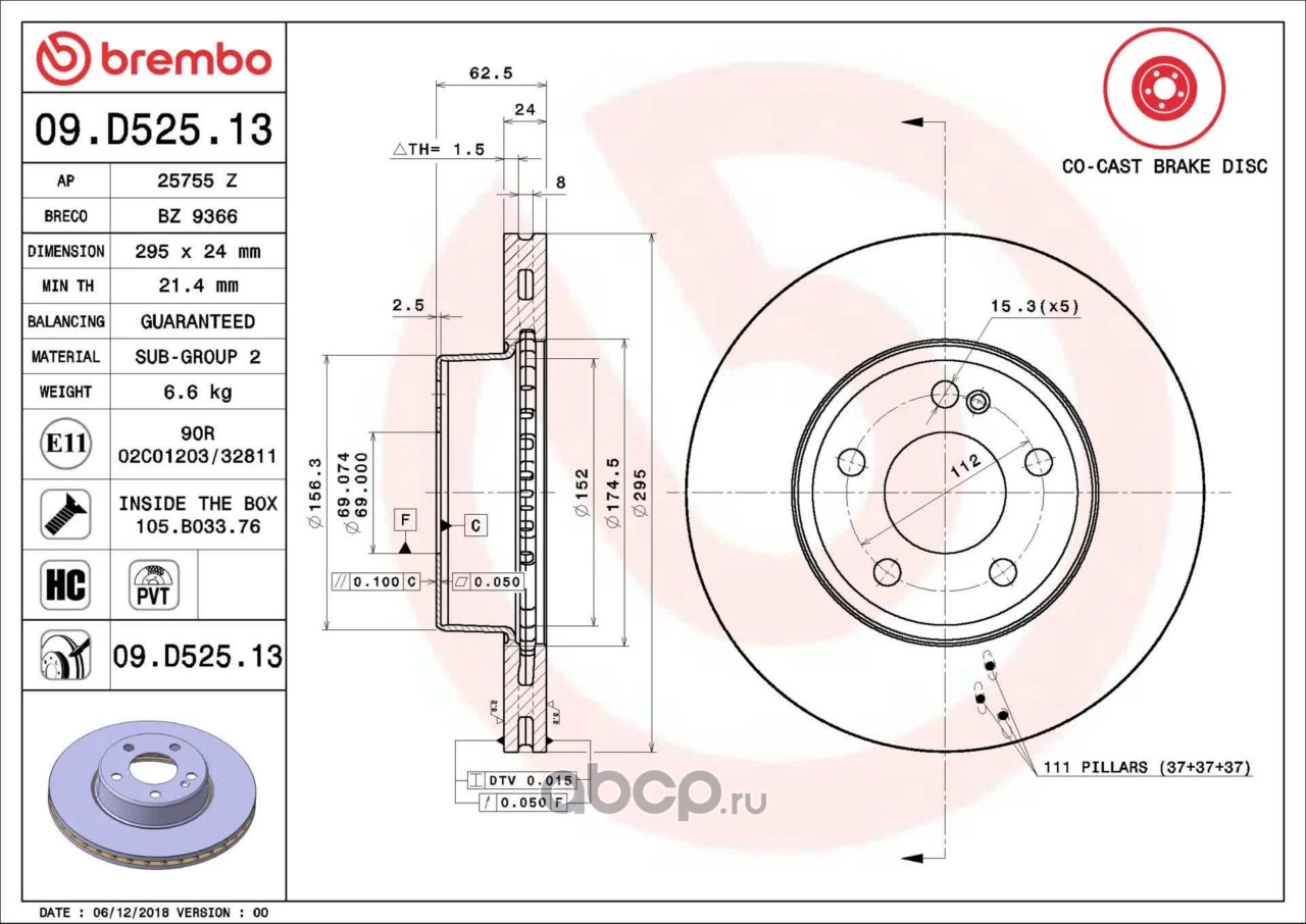 Расширенное описание: Тормозной диск , c технологией Co-cast , вентилируемый с технологией PVT