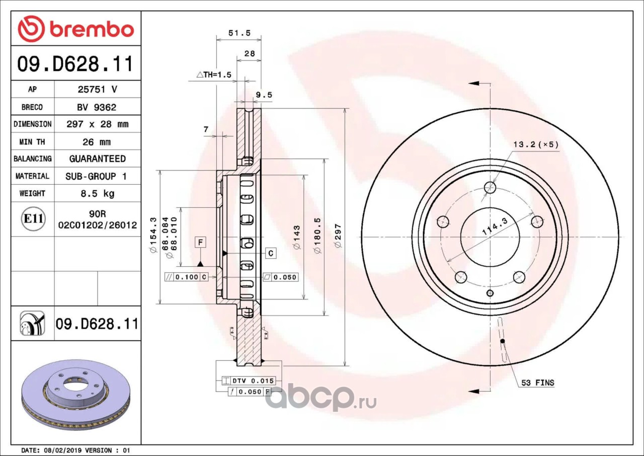 Диск тормозной 09.D628.11