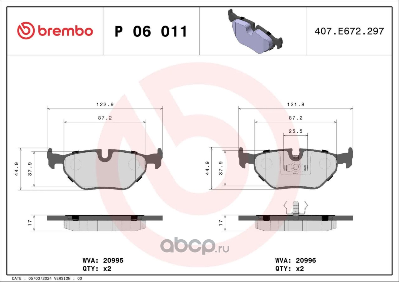 All World Cars - продажа Колодки торм.зад. артикул P06011 по всей России и странах СНГ. Развитая сеть представительств с быстрой доставкой товаров бренда Brembo и гарантией выгодной цены. Покупая в AWC товар Brembo каталожный номер P06011 вы бережете свое время, нервы и деньги.