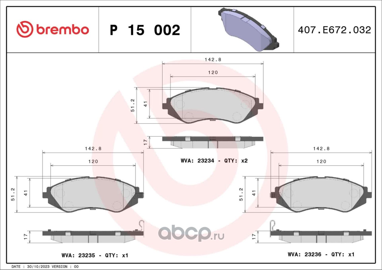 All World Cars - продажа Колодки тормозные передние BREMBO P15002 артикул P15002 по всей России и странах СНГ. Развитая сеть представительств с быстрой доставкой товаров бренда Brembo и гарантией выгодной цены. Покупая в AWC товар Brembo каталожный номер P15002 вы бережете свое время, нервы и деньги.