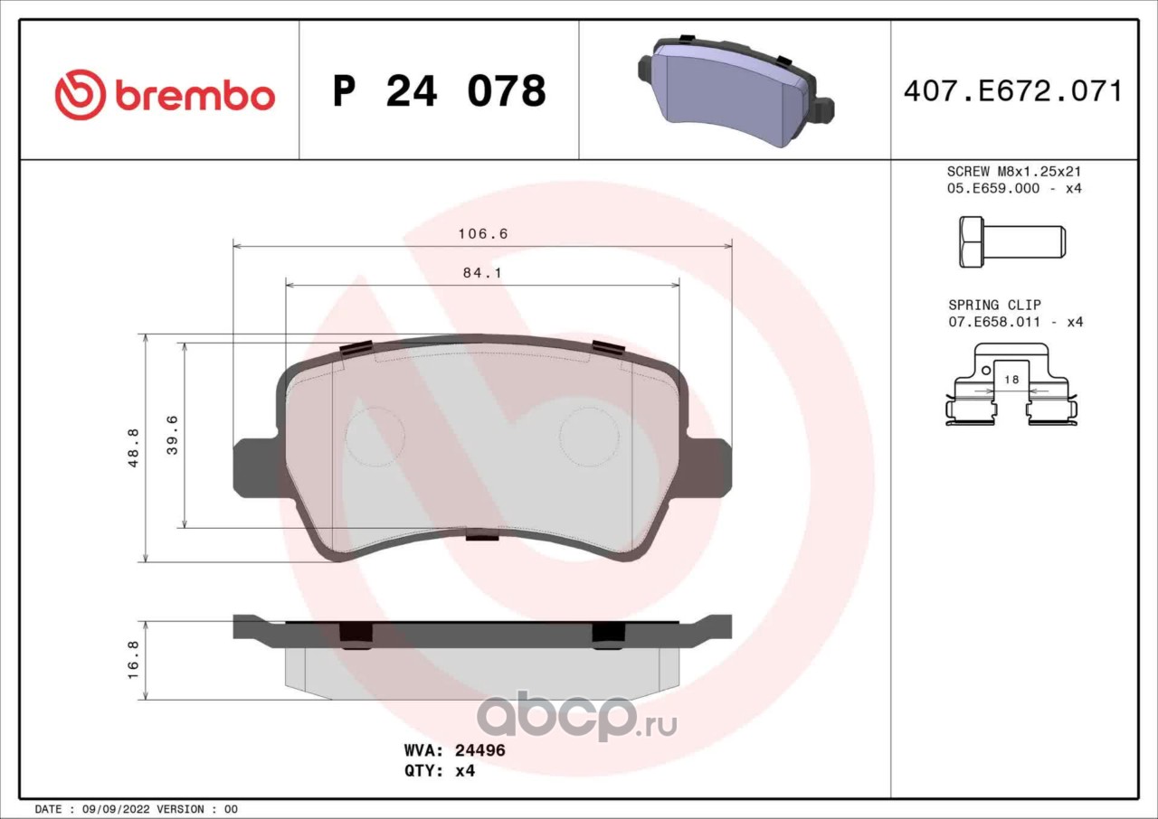 All World Cars - продажа Колодки тормозные, комплект задний артикул P24078 по всей России и странах СНГ. Развитая сеть представительств с быстрой доставкой товаров бренда Brembo и гарантией выгодной цены. Покупая в AWC товар Brembo каталожный номер P24078 вы бережете свое время, нервы и деньги.