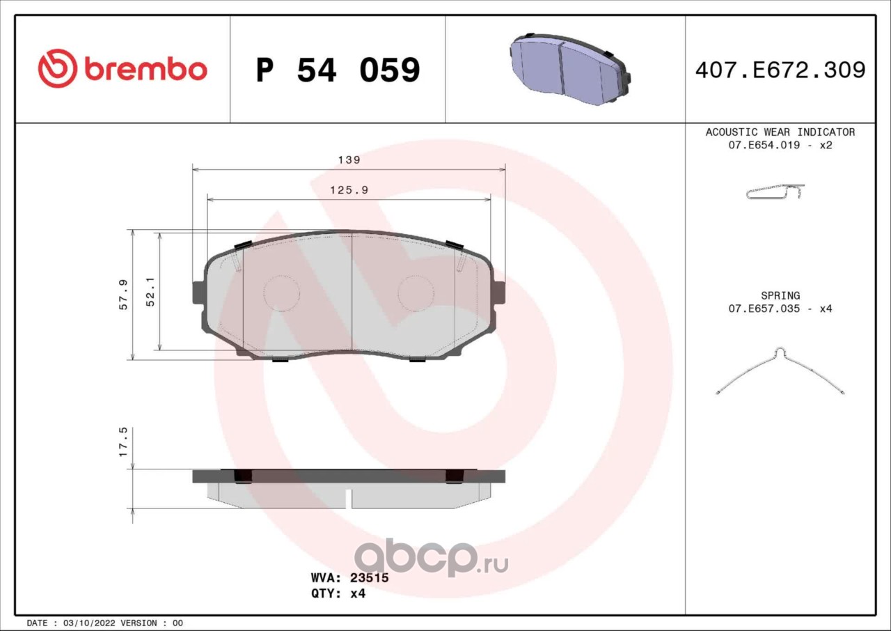 All World Cars - продажа Колодки торм.пер. артикул P54059 по всей России и странах СНГ. Развитая сеть представительств с быстрой доставкой товаров бренда Brembo и гарантией выгодной цены. Покупая в AWC товар Brembo каталожный номер P54059 вы бережете свое время, нервы и деньги.