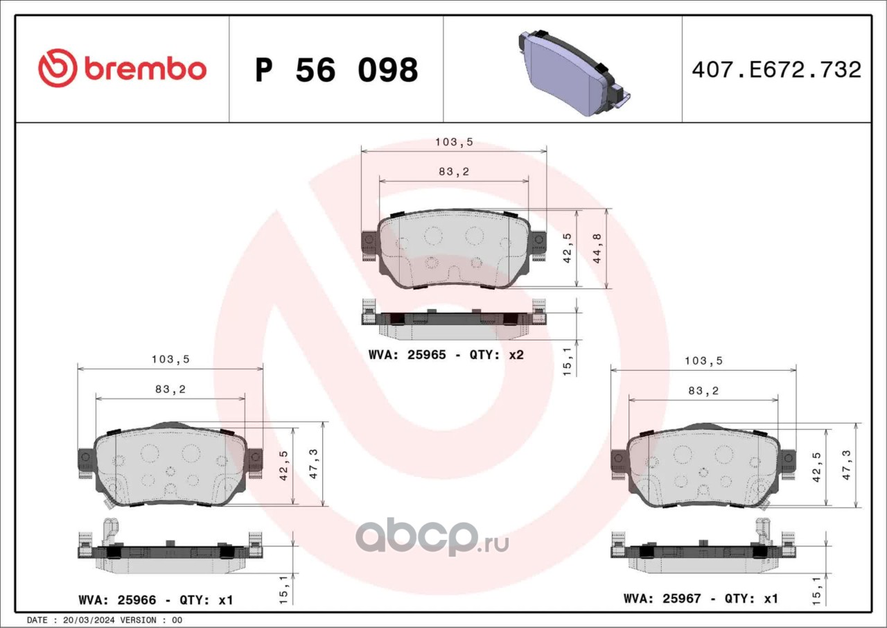 All World Cars - продажа КОЛОДКИ ТОРМОЗНЫЕ ДИСКОВЫЕ, КОМПЛЕКТ артикул P56098 по всей России и странах СНГ. Развитая сеть представительств с быстрой доставкой товаров бренда Brembo и гарантией выгодной цены. Покупая в AWC товар Brembo каталожный номер P56098 вы бережете свое время, нервы и деньги.