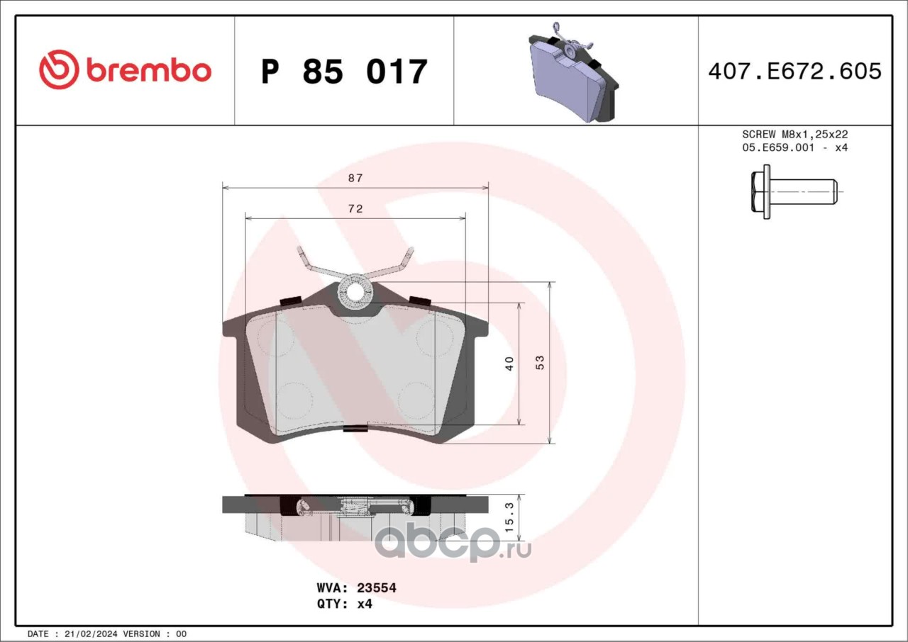 All World Cars - продажа Колодки тормозные, комплект задний артикул P85017 по всей России и странах СНГ. Развитая сеть представительств с быстрой доставкой товаров бренда Brembo и гарантией выгодной цены. Покупая в AWC товар Brembo каталожный номер P85017 вы бережете свое время, нервы и деньги.