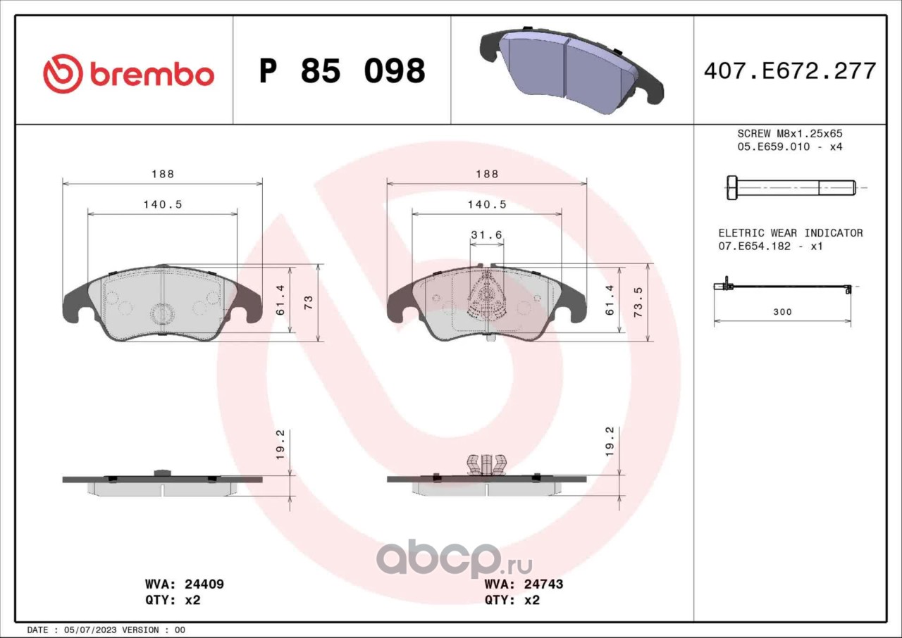 All World Cars - продажа Колодки передние AD A4/A5/Q5 BREMBO P85098 артикул P85098 по всей России и странах СНГ. Развитая сеть представительств с быстрой доставкой товаров бренда Brembo и гарантией выгодной цены. Покупая в AWC товар Brembo каталожный номер P85098 вы бережете свое время, нервы и деньги.