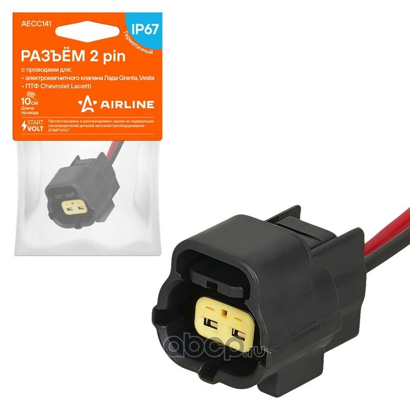 AIRLINE AECC141 Разъём 2 pin с проводами для э/магн.клапана Лада Granta/Vesta; для ПТФ Chevrolet Lacetti