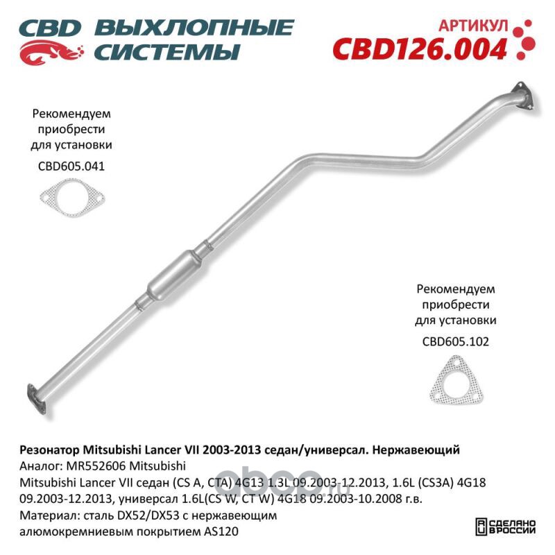 Резонатор Mitsubishi Lancer VII 2003-2013 седан/универсал. Нержавеющий. CBD126.004