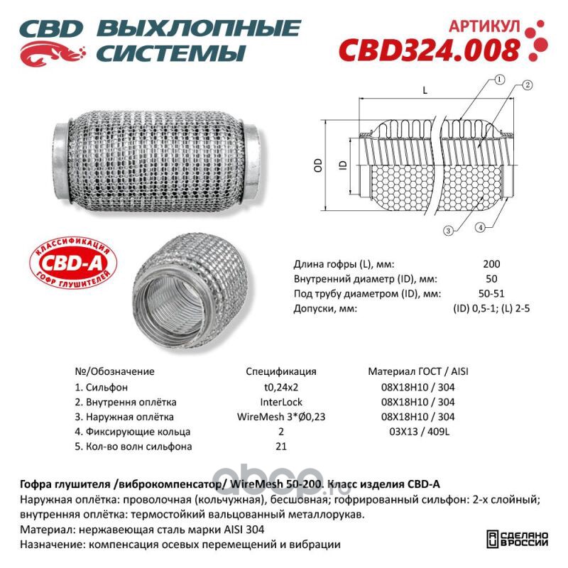 Расширенное описание: Гофра глушителя 3х-сл WIRE MESH 50-200. CBD324.008