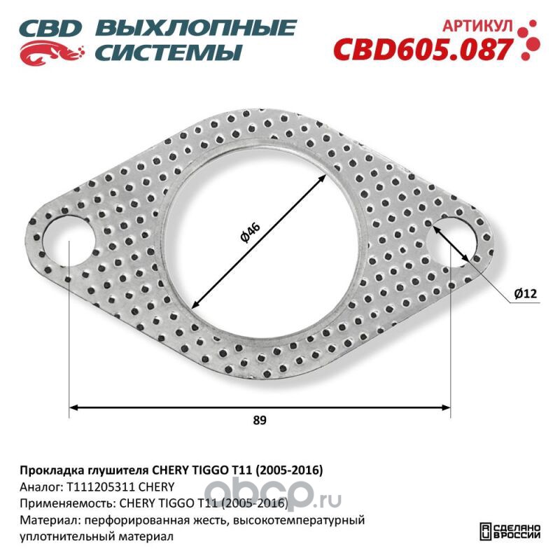 Расширенное описание: Прокладка глушителя CHERY TIGGO T11 (2005-2016). CBD605.087
