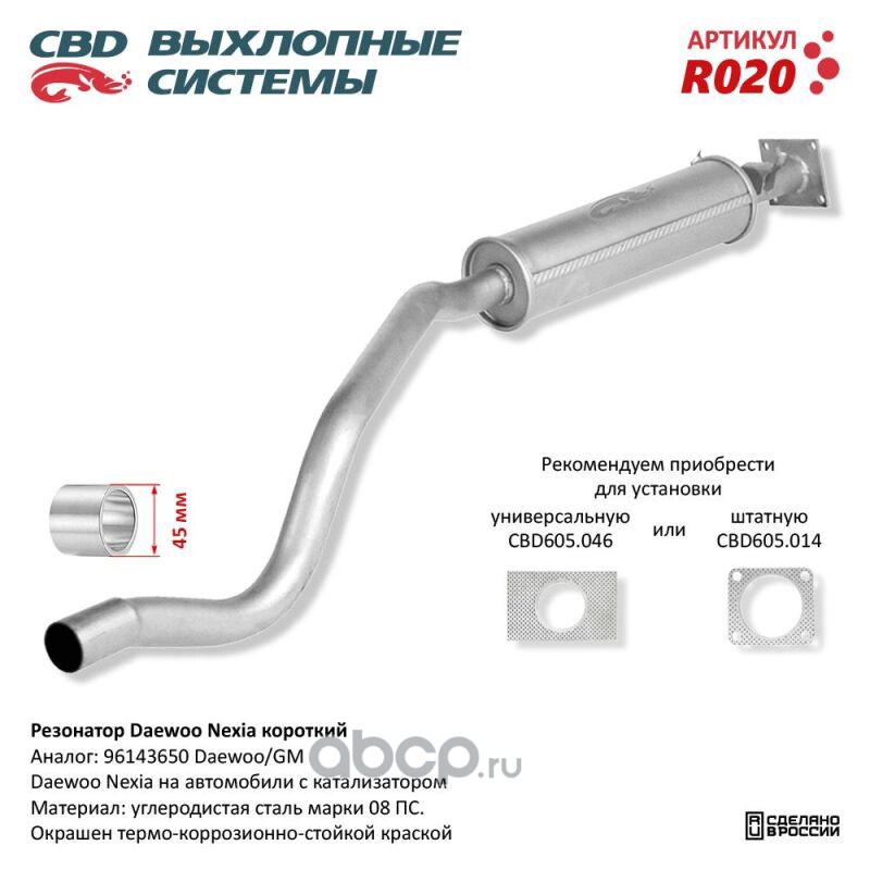 All World Cars - продажа Резонатор Daewoo Nexia короткий 96143650 CBD. R020 CBD r020 артикул R020 по всей России и странах СНГ. Развитая сеть представительств с быстрой доставкой товаров бренда CBD и гарантией выгодной цены. Покупая в AWC товар CBD каталожный номер R020 вы бережете свое время, нервы и деньги.