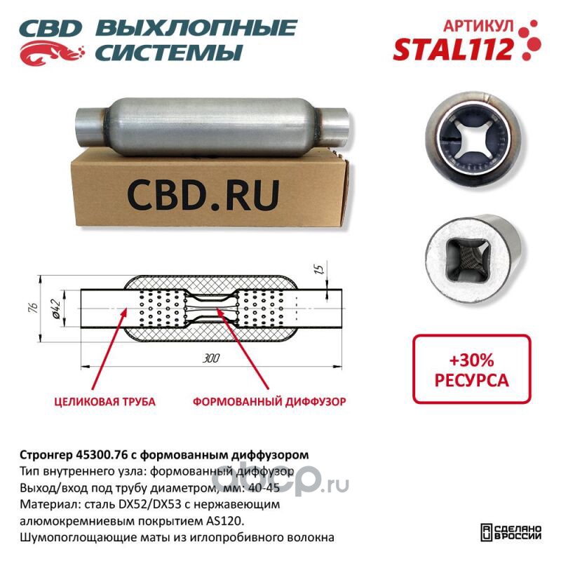 All World Cars - продажа Стронгер пламегаситель перфорированный диффузор UNIVERSAL /D=76x45mm L=300mm CBD STAL112 артикул STAL112 по всей России и странах СНГ. Развитая сеть представительств с быстрой доставкой товаров бренда CBD и гарантией выгодной цены. Покупая в AWC товар CBD каталожный номер STAL112 вы бережете свое время, нервы и деньги.