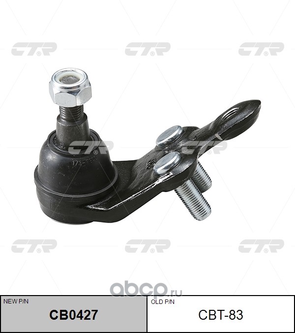 All World Cars - продажа (новый номер CB0427) Шаровая опора лев. ниж. артикул CBT83 по всей России и странах СНГ. Развитая сеть представительств с быстрой доставкой товаров бренда Ctr и гарантией выгодной цены. Покупая в AWC товар Ctr каталожный номер CBT83 вы бережете свое время, нервы и деньги.