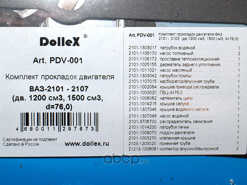 К-т прокладок двигателя (паронит) для а/м ВАЗ 2101-07 (малый, 14 наим.) |