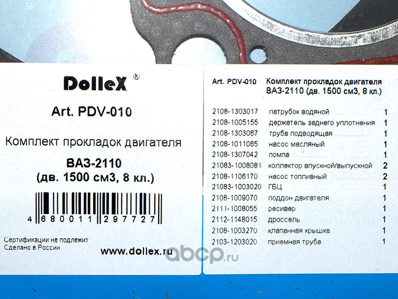 Прокладки двигателя кт. ВАЗ-2108-099 7 прокладок Riginal |