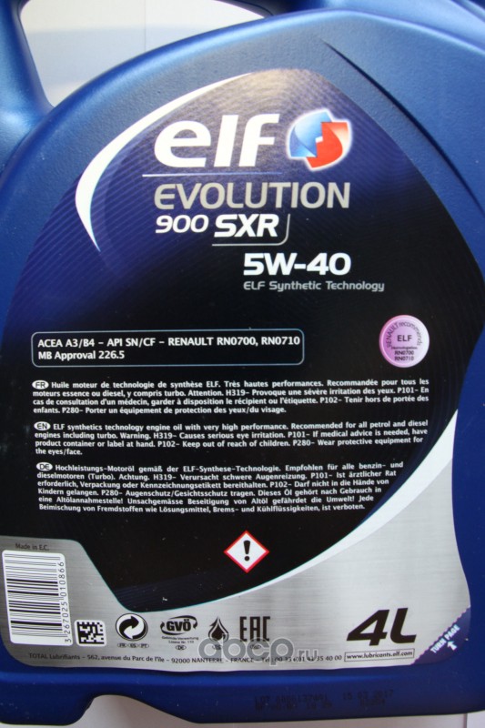 Масло моторное синтетика ELF EVOLUTION 900 SXR 5W-40 4 л.