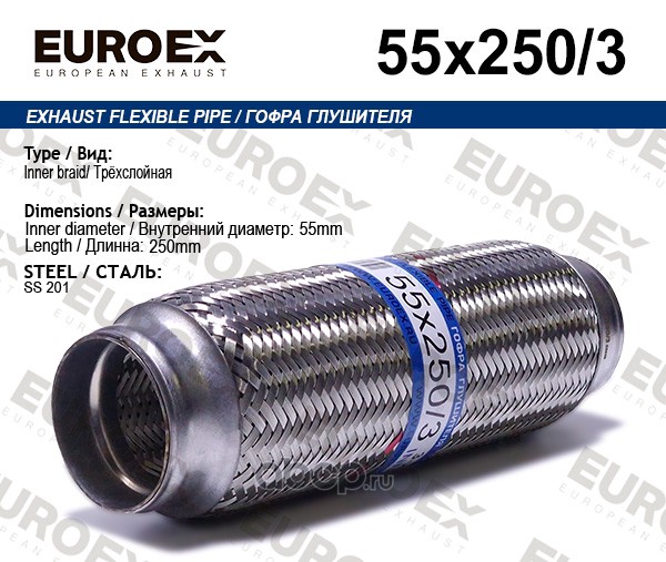 Гофра глушителя 55x250 3-х слойная