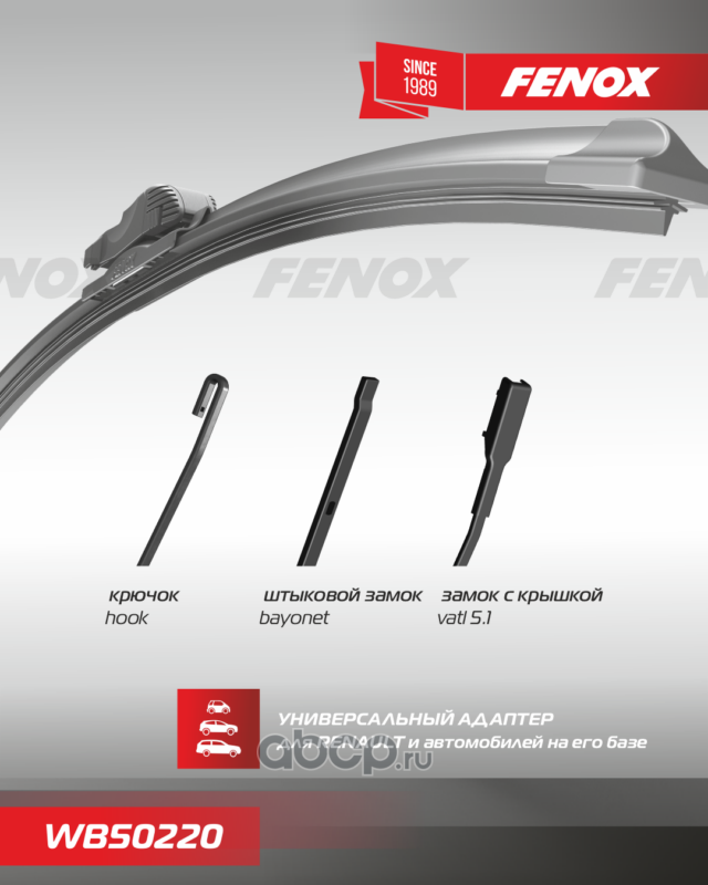 Расширенное описание: Щетка стеклоочистителя WB50220 500 мм (20""); бескаркасная Renault Logan 2 15-, Sandero 2 FENOX
