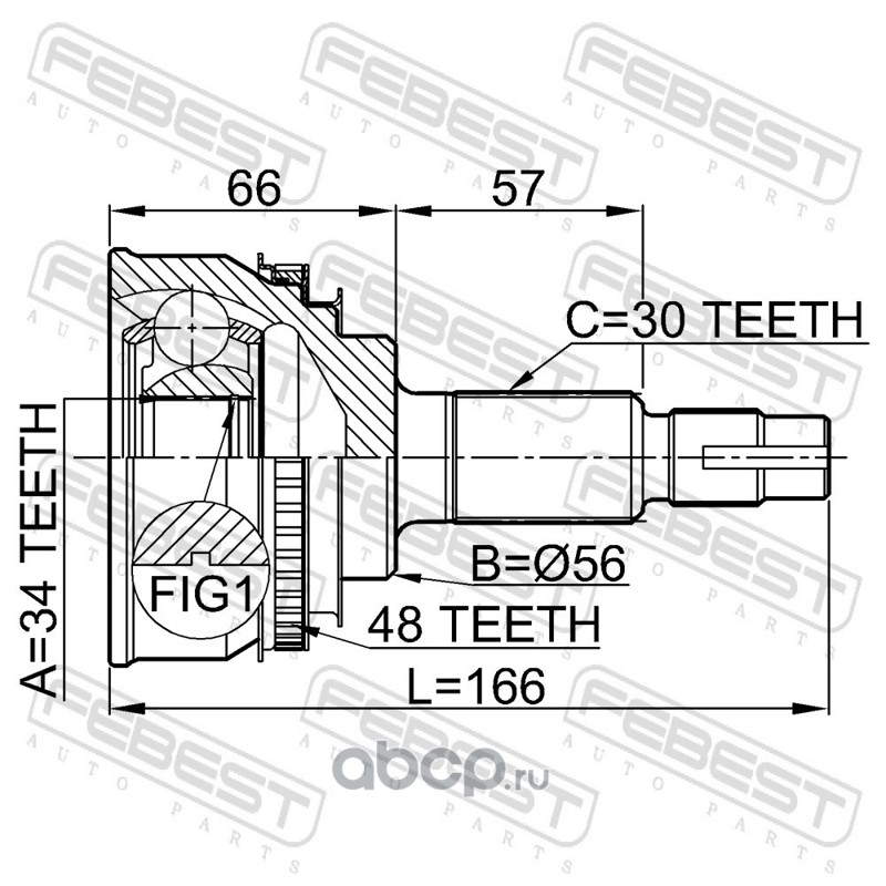 HDK TO28A48 Шрус 34x56x30 с кольцом ABS *внешний с кольцом ABS