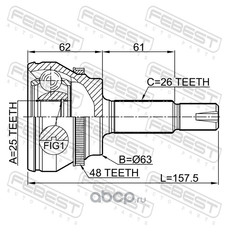 All World Cars - продажа Шрус наружный 25x63x26 артикул 0110ZNRA48 по всей России и странах СНГ. Развитая сеть представительств с быстрой доставкой товаров бренда Febest и гарантией выгодной цены. Покупая в AWC товар Febest каталожный номер 0110ZNRA48 вы бережете свое время, нервы и деньги.
