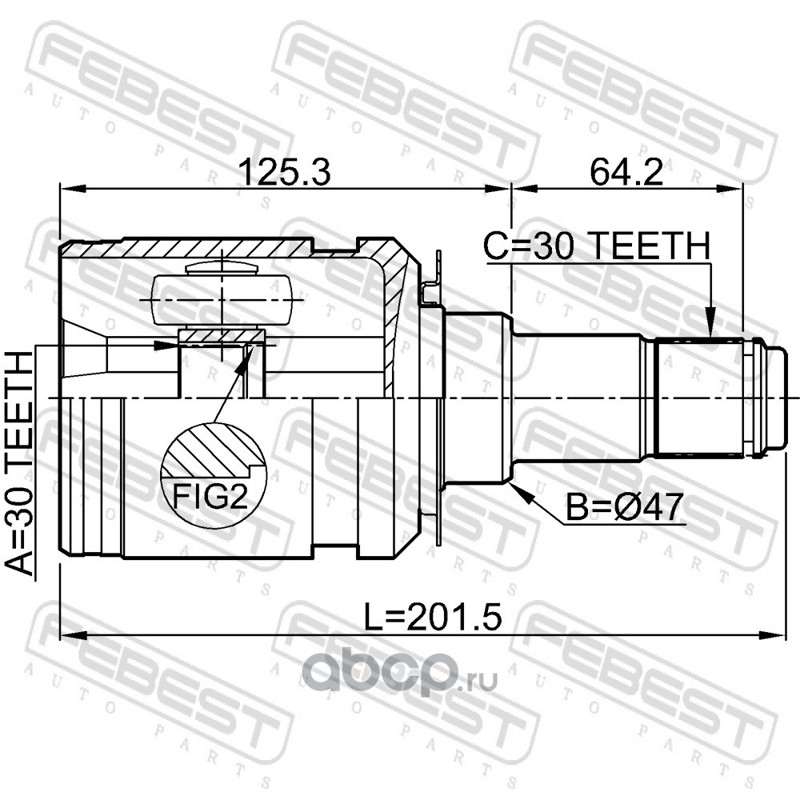 Шрус внутренний 30x47x30 TOYOTA LAND CRUISER PRADO 2009.08- FEBEST 0111-GRJ150