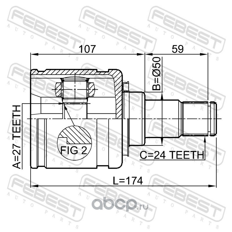 Расширенное описание: Шрус внутренний L 27x50x24