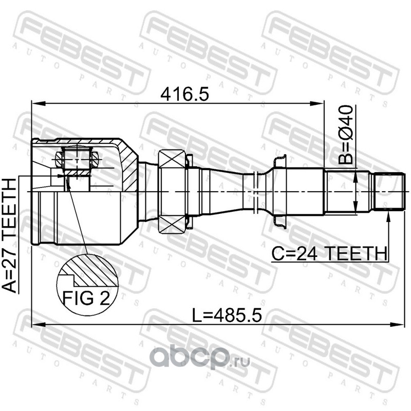 FENOX CV16384 ШРУС 26/27шл, наружный, ABS 48 зуб