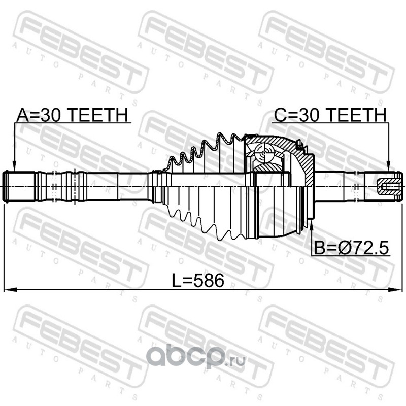 All World Cars - продажа Шрус наружный с валом 30x584x30 артикул 0114074 по всей России и странах СНГ. Развитая сеть представительств с быстрой доставкой товаров бренда Febest и гарантией выгодной цены. Покупая в AWC товар Febest каталожный номер 0114074 вы бережете свое время, нервы и деньги.