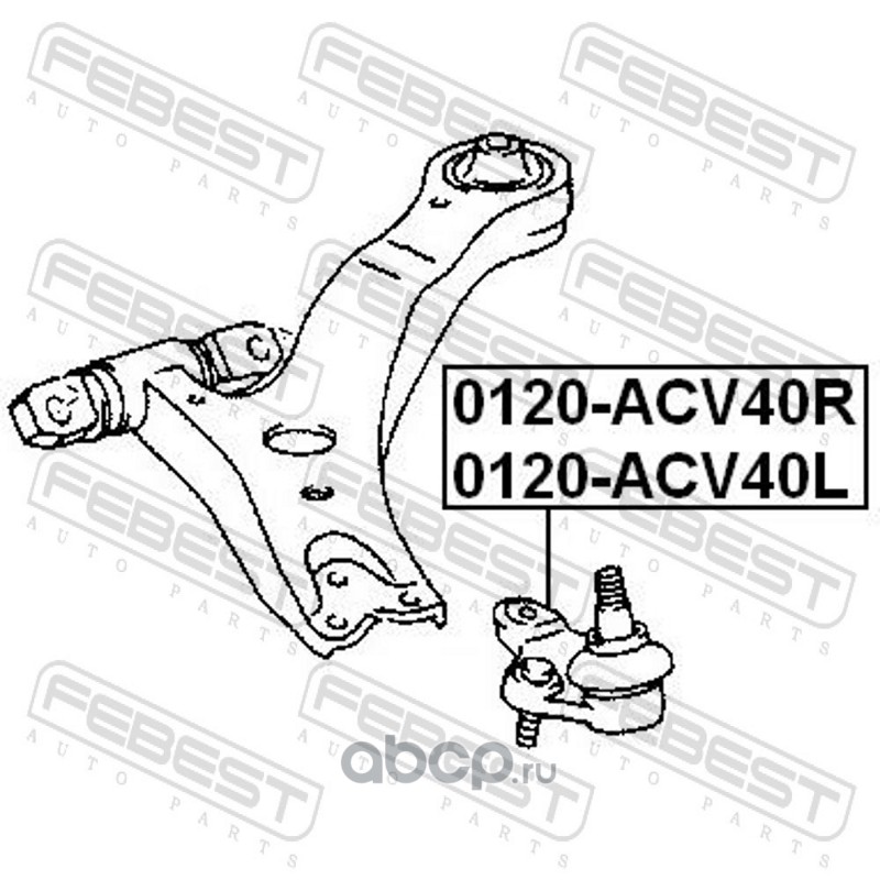 All World Cars - продажа Опора шаровая нижняя левая артикул 0120ACV40L по всей России и странах СНГ. Развитая сеть представительств с быстрой доставкой товаров бренда Febest и гарантией выгодной цены. Покупая в AWC товар Febest каталожный номер 0120ACV40L вы бережете свое время, нервы и деньги.