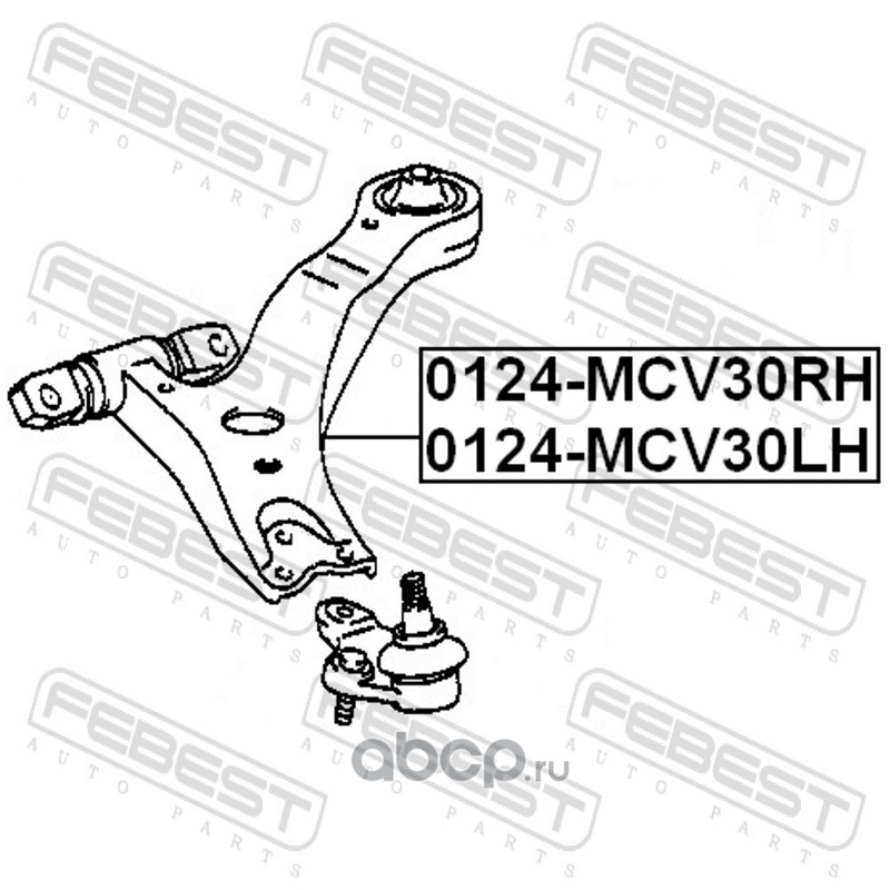 All World Cars - продажа Рычаг передний нижний R TOYOTA Camry 2001->/LEXUS RXII 300/330/350 FEBEST 0124-MCV30RH артикул 0124MCV30RH по всей России и странах СНГ. Развитая сеть представительств с быстрой доставкой товаров бренда Febest и гарантией выгодной цены. Покупая в AWC товар Febest каталожный номер 0124MCV30RH вы бережете свое время, нервы и деньги.