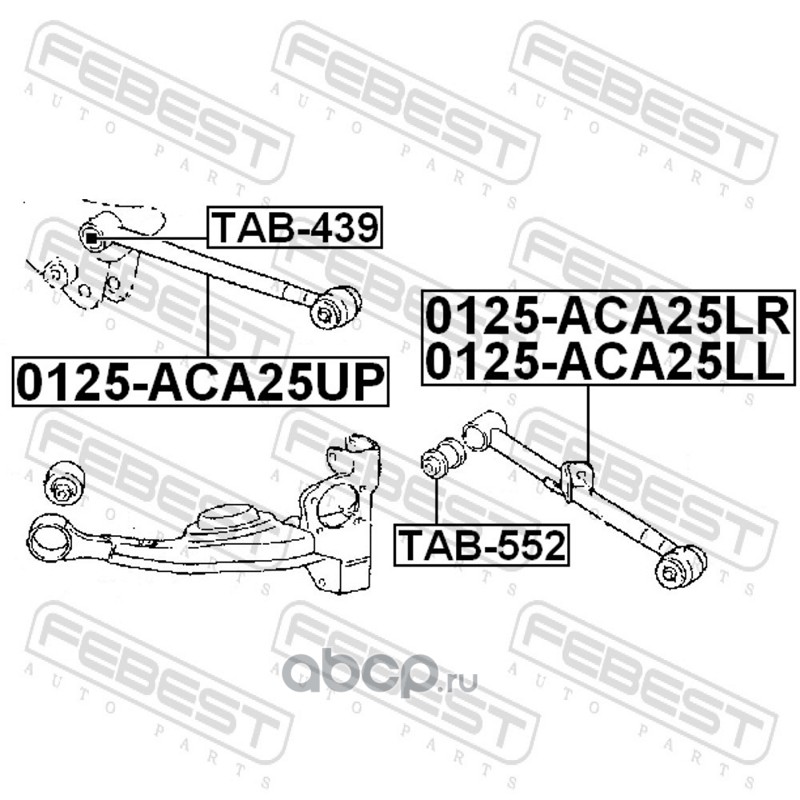 All World Cars - продажа Тяга задняя поперечная верхняя артикул 0125ACA25UP по всей России и странах СНГ. Развитая сеть представительств с быстрой доставкой товаров бренда Febest и гарантией выгодной цены. Покупая в AWC товар Febest каталожный номер 0125ACA25UP вы бережете свое время, нервы и деньги.
