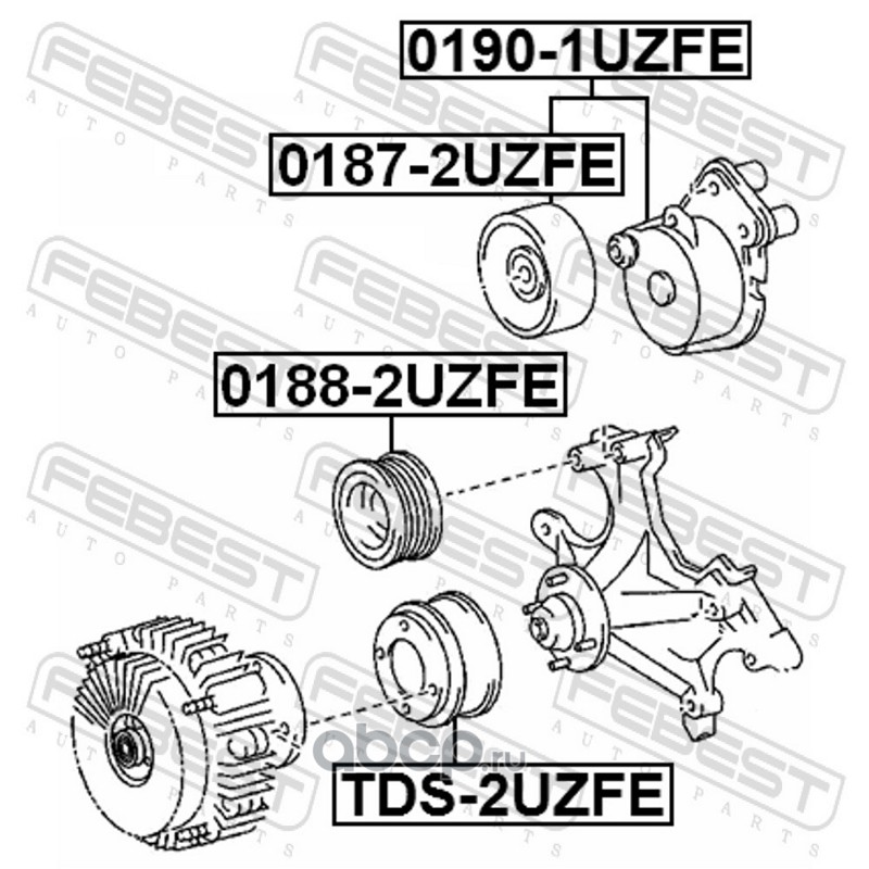 All World Cars - продажа Ролик натяжной артикул 01872UZFE по всей России и странах СНГ. Развитая сеть представительств с быстрой доставкой товаров бренда Febest и гарантией выгодной цены. Покупая в AWC товар Febest каталожный номер 01872UZFE вы бережете свое время, нервы и деньги.