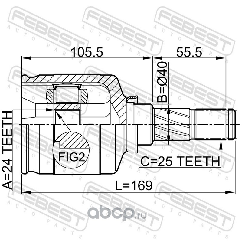 ШРУС ВНУТРЕННИЙ ЛЕВЫЙ 24x40x25 (NISSAN PRIMERA P12 2001-2007) FEBEST