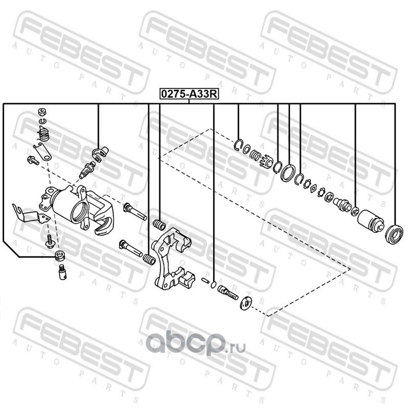 All World Cars - продажа Ремкомплект суппорта тормозного заднего артикул 0275A33R по всей России и странах СНГ. Развитая сеть представительств с быстрой доставкой товаров бренда Febest и гарантией выгодной цены. Покупая в AWC товар Febest каталожный номер 0275A33R вы бережете свое время, нервы и деньги.