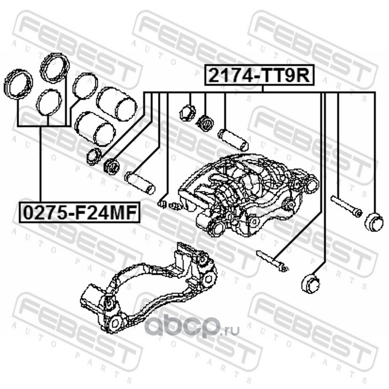 All World Cars - продажа Ремкомплект суппорта тормозного переднего артикул 0275F24MF по всей России и странах СНГ. Развитая сеть представительств с быстрой доставкой товаров бренда Febest и гарантией выгодной цены. Покупая в AWC товар Febest каталожный номер 0275F24MF вы бережете свое время, нервы и деньги.