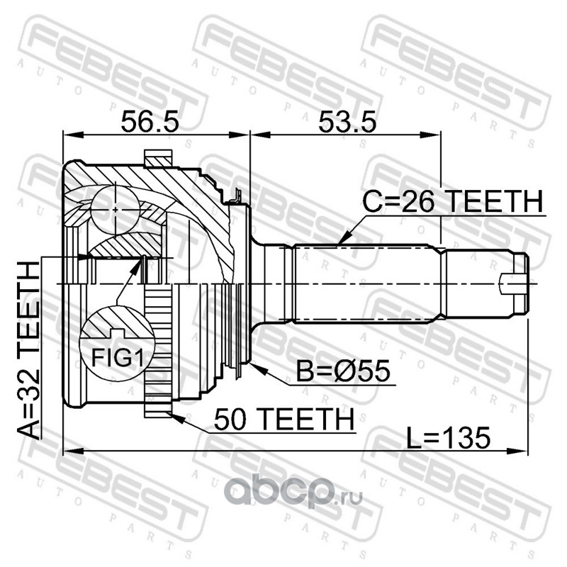 ШРУС НАРУЖНЫЙ 32x55x26 (HONDA CR-V RD1/RD2 1997-2001) FEBEST