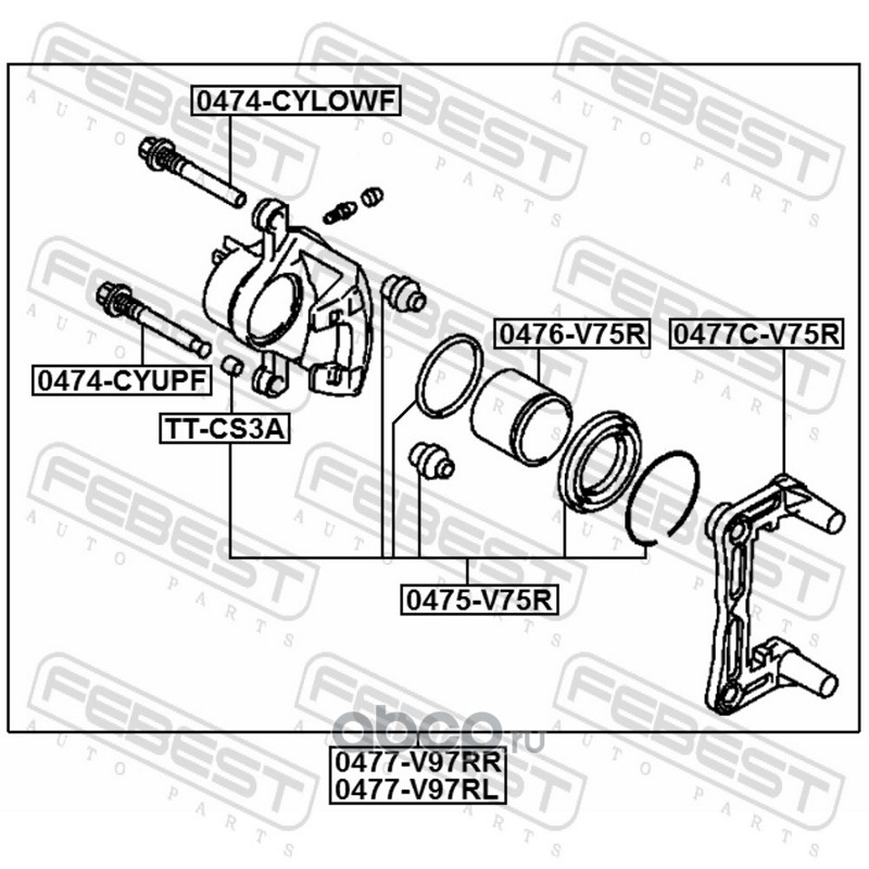All World Cars - продажа Суппорт тормозной задний правый артикул 0477V97RR по всей России и странах СНГ. Развитая сеть представительств с быстрой доставкой товаров бренда Febest и гарантией выгодной цены. Покупая в AWC товар Febest каталожный номер 0477V97RR вы бережете свое время, нервы и деньги.