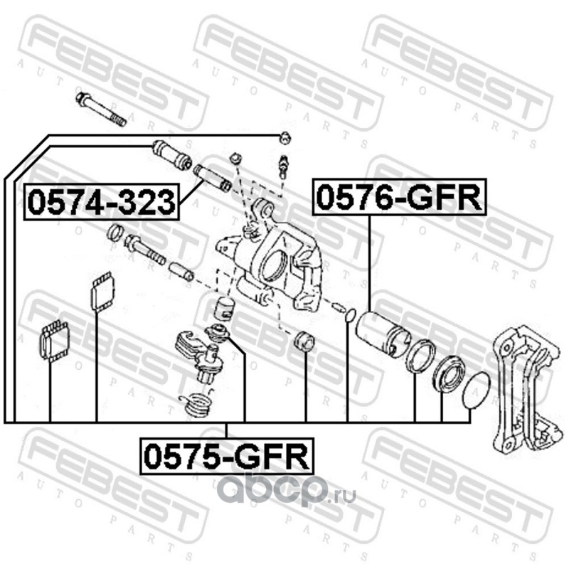 All World Cars - продажа Ремкомплект суппорта тормозного заднего артикул 0575GFR по всей России и странах СНГ. Развитая сеть представительств с быстрой доставкой товаров бренда Febest и гарантией выгодной цены. Покупая в AWC товар Febest каталожный номер 0575GFR вы бережете свое время, нервы и деньги.